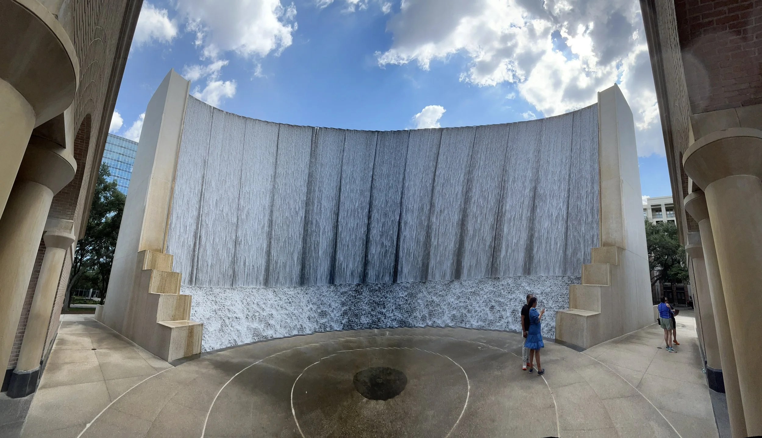 The fountain’s 64-foot height mirrors the 64 stories of the adjacent Williams Tower—a subtle nod to scale and intention.