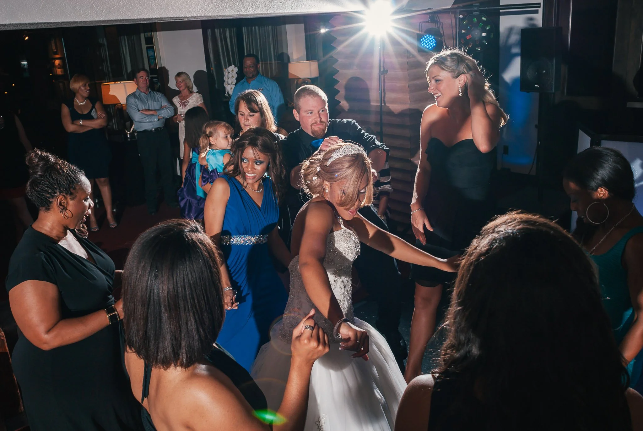 Michelle and I worked together without saying a word. She helped shape the light while I focused on framing the moment. Ashley and AJ leaned into each other and kissed, completely unaware of how everything had lined up around them.