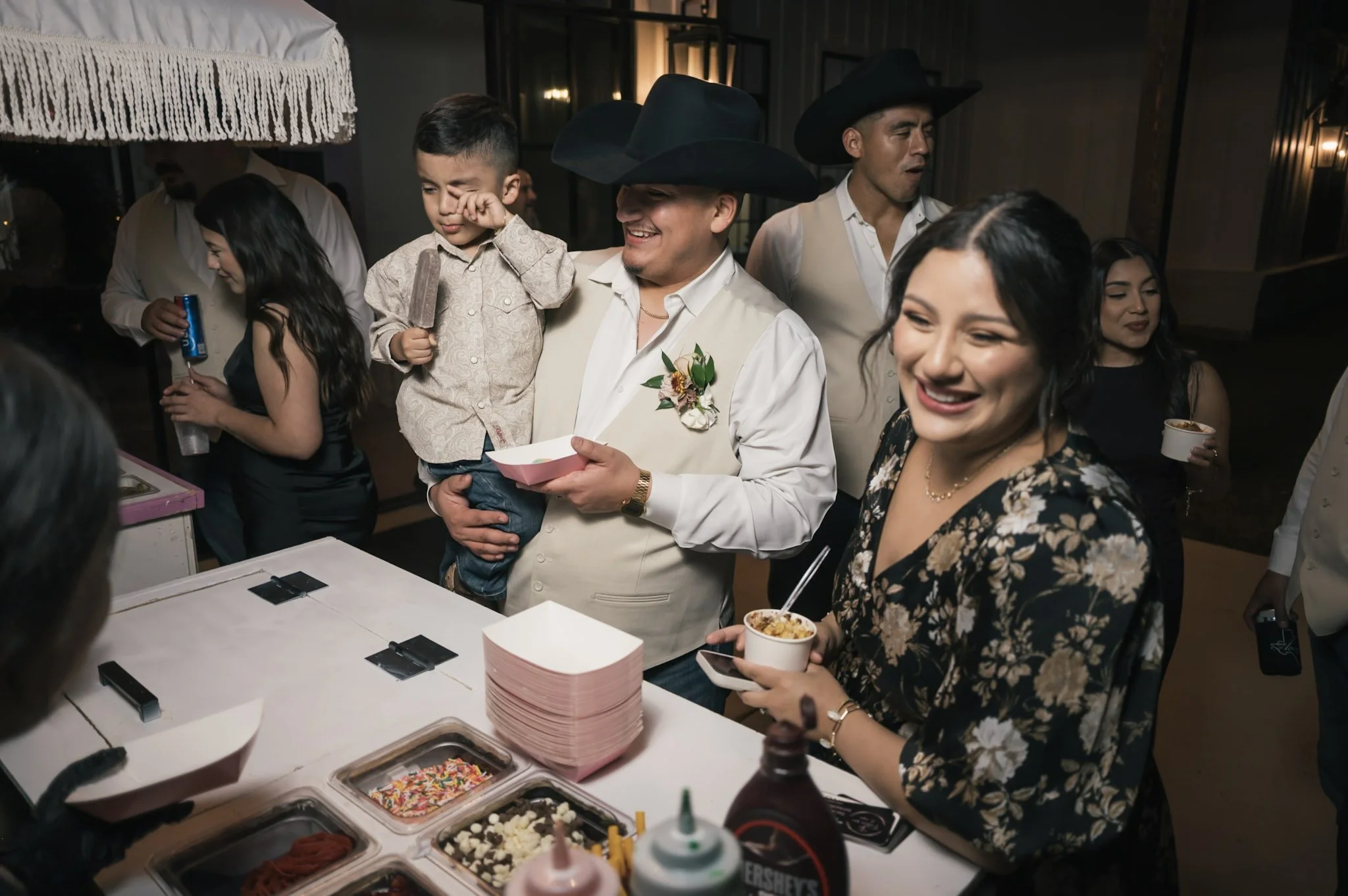 We photographed a wedding not long ago where the couple chose an interactive dessert experience instead of a traditional cake cutting moment. Guests gathered naturally, drawn by curiosity and excitement. There was laughter. There were playful debates about favorite flavors. There were spontaneous toasts happening in the middle of it all.