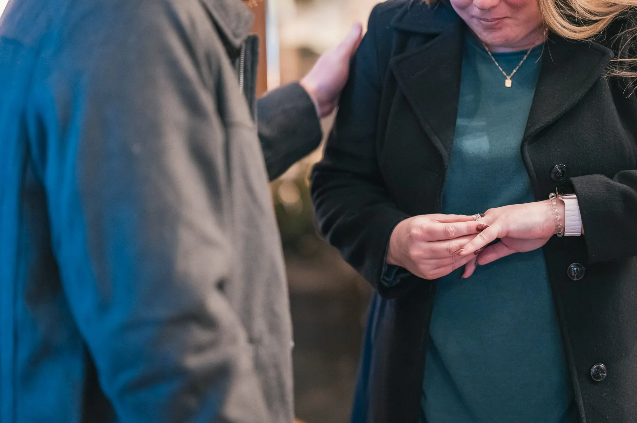 We kept the walk relaxed, capturing a mix of candid moments and quiet details. The ring catching the light. The way Jacob leaned in as they talked. Amanda glancing down at her hand, almost surprised each time.