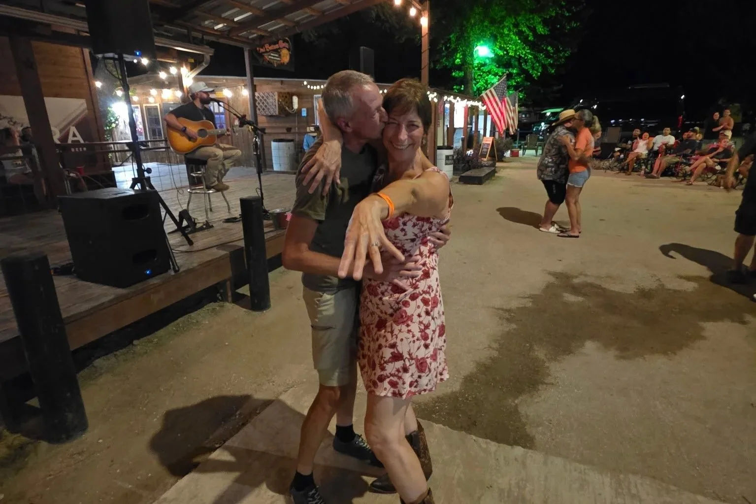 After we picked up the rings, I reached out to Jake with a simple request. If he could play Gravity & You, it would mean everything. When those first notes started drifting through the air, Michelle didn’t think anything of it. We made our way a little closer, found a small pocket of space, and started to dance.